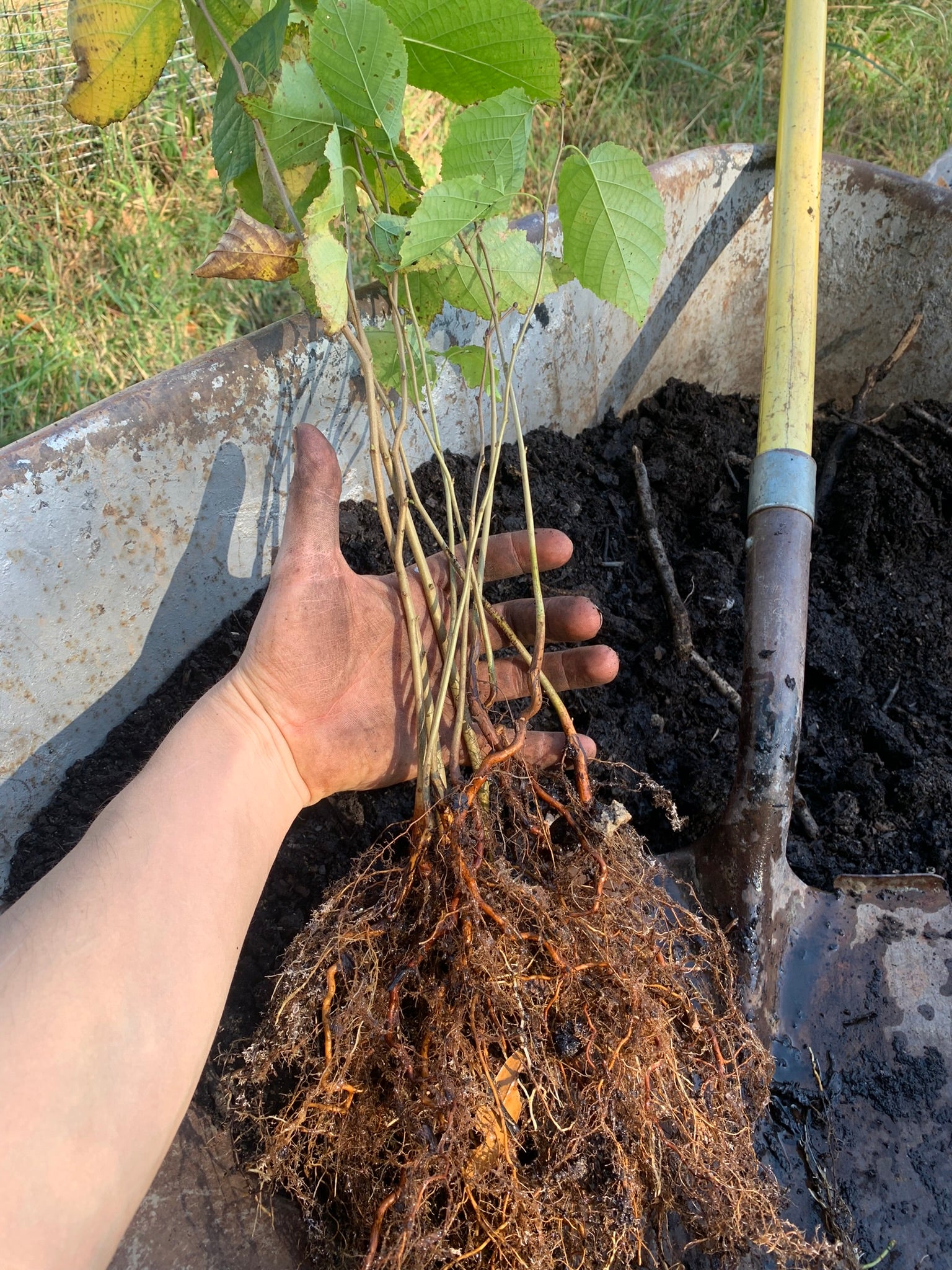 Our seed for these trees came from several sources. The majority of seed came from a wild patch of Corylus americana growing along a dirt road in Cedar Grove NC. There are several dozen shrubs in this patch with varying nut size and productivity. Additionally we included some seed from shrubs planted at one of our friend's homes here in Bassett VA and also from Feralwood Nursery's "Promise Hedge". We highly recommend checking out our friends over at Feralwood Nursery in Western NC!